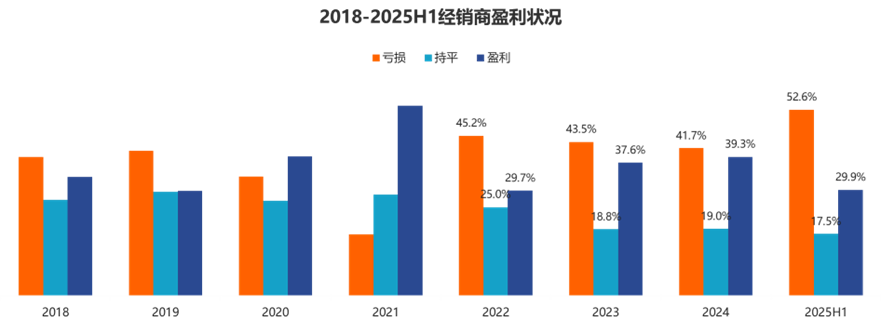 2018-2025H1經(jīng)銷商盈利情況 圖源:中國(guó)汽車流通協(xié)會(huì) 協(xié)會(huì)調(diào)查結(jié)果顯示,汽車經(jīng)銷商的總體滿意度得分為64.7分,較2024年底得分大幅下降。利潤(rùn)空間被持續(xù)擠壓、運(yùn)營(yíng)資金成本高企、庫(kù)存壓力加大,成為壓在經(jīng)銷商身上的“三座大山”。 豪華品牌的渠道收縮態(tài)勢(shì)尤為明顯。曾經(jīng)號(hào)稱“4S店之王”的廣匯汽車,2025年1至7月被取消授權(quán)的門店多達(dá)517家,旗下29家奔馳4S店全部關(guān)停。另一家大型經(jīng)銷商集團(tuán)覽海汽車則因12億元債務(wù)危機(jī),其名下的9家寶馬4S店被集體摘牌。 作為最早進(jìn)入中國(guó)市場(chǎng)且渠道布局最廣的豪華品牌之一,寶馬近期在北京、成都、青島等多個(gè)核心城市密集出現(xiàn)經(jīng)銷商閉店現(xiàn)象。時(shí)代周報(bào)記者了解到,山東青島的一家寶馬4S店倒閉,被銀行扣押抵債的車輛還停在原處,某新勢(shì)力車企已經(jīng)接手了這一店面。 值得關(guān)注的是,寶馬此前為推廣新能源車型專門設(shè)立的“BMW iSpace”城市展廳項(xiàng)目,曾在全國(guó)商超、商業(yè)區(qū)內(nèi)鋪開,但目前在各大本地平臺(tái)、地圖軟件上已經(jīng)無法查到。 經(jīng)銷商作為產(chǎn)業(yè)鏈下游的重要一環(huán),車企也在為此尋求解決方法。 例如,保時(shí)捷在進(jìn)行渠道優(yōu)化。保時(shí)捷中國(guó)總裁及首席執(zhí)行官潘勵(lì)馳宣布,計(jì)劃到2026年底將中國(guó)經(jīng)銷商數(shù)量?jī)?yōu)化至約100家,較現(xiàn)有規(guī)??s減約三分之一。 二線豪華品牌也在尋求輕資產(chǎn)的渠道模式。林肯中國(guó)總裁賈鳴鏑曾公開表示,計(jì)劃“將單店面積壓縮80%至800平方米,團(tuán)隊(duì)精簡(jiǎn)至10人,投資門檻從千萬元級(jí)別降至150萬元”。 這一策略旨在提升單店質(zhì)量與盈利能力,也是在市場(chǎng)競(jìng)爭(zhēng)日益激烈背景下的主動(dòng)調(diào)整。 新勢(shì)力的“渠道下沉” 在傳統(tǒng)品牌經(jīng)銷商看來,新能源、新勢(shì)力的情況要好過一些。從行業(yè)數(shù)據(jù)上看也確實(shí)如此,但即使新能源獨(dú)立品牌經(jīng)銷商的經(jīng)營(yíng)狀況好于傳統(tǒng)燃油車品牌,其盈利占比也僅有42.9%。 隨著新能源汽車滲透率突破50%,曾經(jīng)被視為“用戶體驗(yàn)護(hù)城河”的直營(yíng)模式弊端開始顯現(xiàn)。面對(duì)這種趨勢(shì),多家新能源車企也開啟了銷售模式的轉(zhuǎn)型。 據(jù)《每日經(jīng)濟(jì)新聞》報(bào)道,以上海某核心商圈新能源汽車街區(qū)為例,超半數(shù)新勢(shì)力門店已撤店,剩余門店多縮減展示面積;北京、成都、寧波等多地核心商圈也出現(xiàn)類似情況,如北京王府井新勢(shì)力門店從八家銳減至兩三家。 此外,很多一開始選擇直營(yíng)的新品牌都在轉(zhuǎn)變銷售模式,分散巨額的銷售成本。 蔚來(09866.HK)不只在銷售渠道引入了合伙人模式,其加電站業(yè)務(wù)也開放了引入投資人計(jì)劃。小鵬汽車(09868.HK)則早早放棄了直營(yíng)模式,大幅引入經(jīng)銷商加盟。 比亞迪(SZ002594)旗下高端品牌騰勢(shì)和方程豹?jiǎng)t轉(zhuǎn)向“直營(yíng)+經(jīng)銷商”混合模式。這種模式能夠結(jié)合兩種渠道的優(yōu)勢(shì),平衡成本與市場(chǎng)覆蓋范圍。 另一家新勢(shì)力品牌阿維塔也已經(jīng)完成直營(yíng)向經(jīng)銷的切換,僅保留北上廣等核心城市的極少數(shù)直營(yíng)店,實(shí)現(xiàn)“降本增效”。 小米汽車(01810.HK)則直接確立了“1+N”模式(自建交付中心+授權(quán)經(jīng)銷商),利用傳統(tǒng)經(jīng)銷商的資源來承接流量。